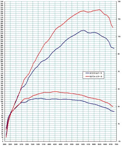 つまりは全域に渡り、ノーマルデーターとは異なる大きなトルクを得ているとお考え頂きたい。