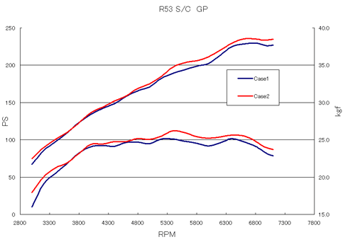 JCW-GPのプログラムはR53の標準と比べると、スロットル/パーシャル・全開共に、点火時期は遅角気味で、想像よりは大人しい仕様に設定されています。