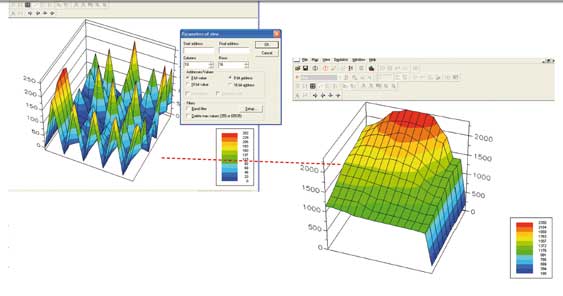 EPROMファイルを10進法や16進法での2D・3D チャートで表記も可能です。