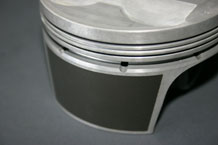 4032系の特殊素材を使い、熱膨張を抑え、ピストンクリアランスを鍛造ピストンとしては狭めることを可能としています。